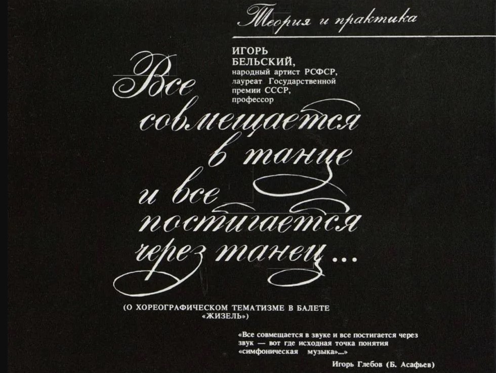 Текст размещается с сохранением орфографии и пунктуации статьи, опубликованной в печатном журнале «Балет». 1988 год.