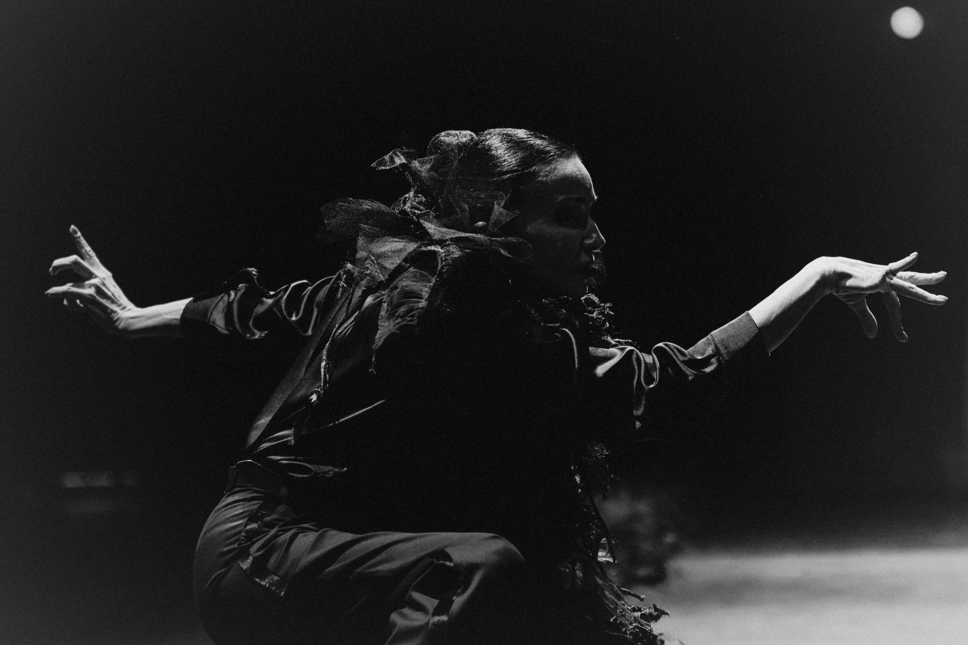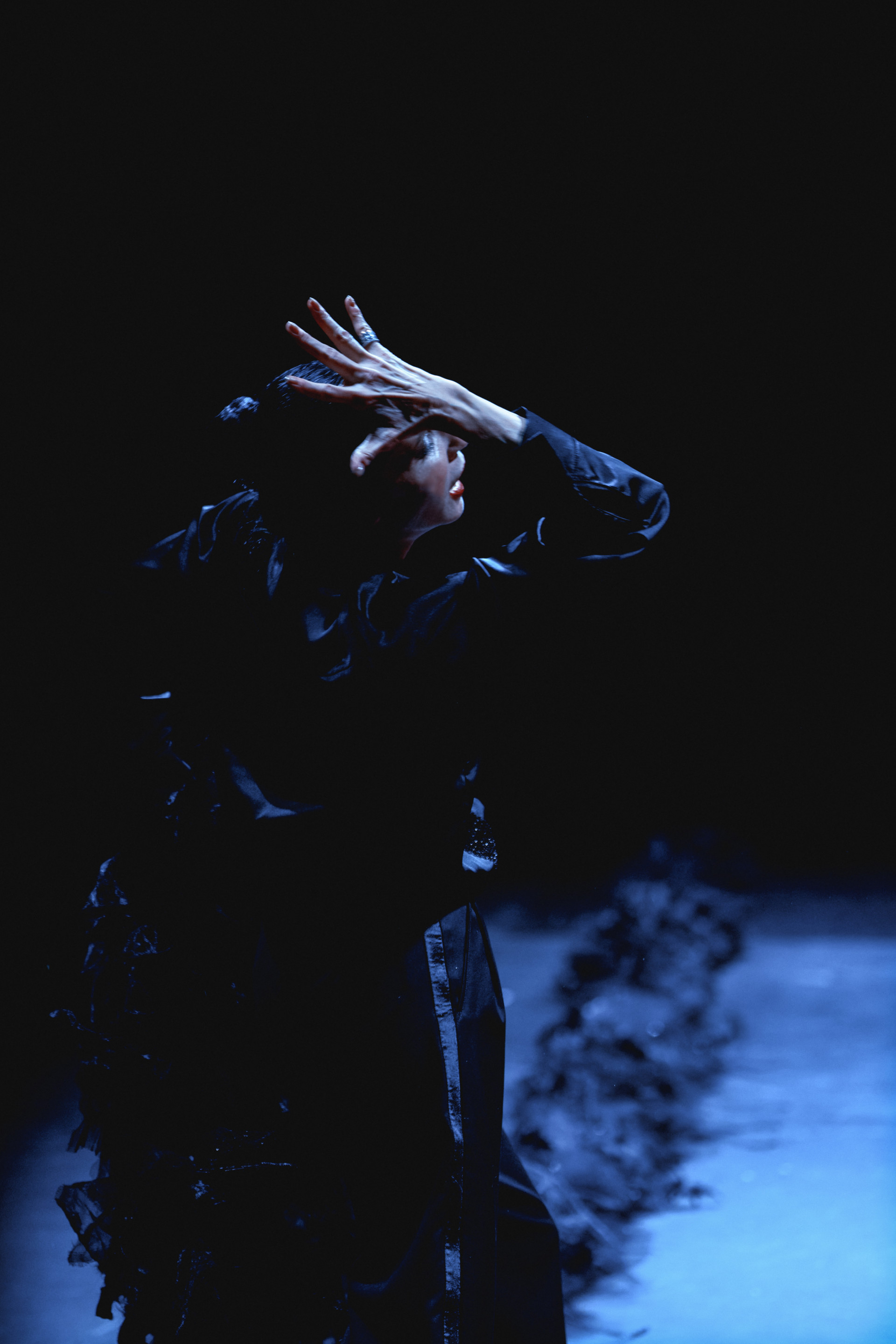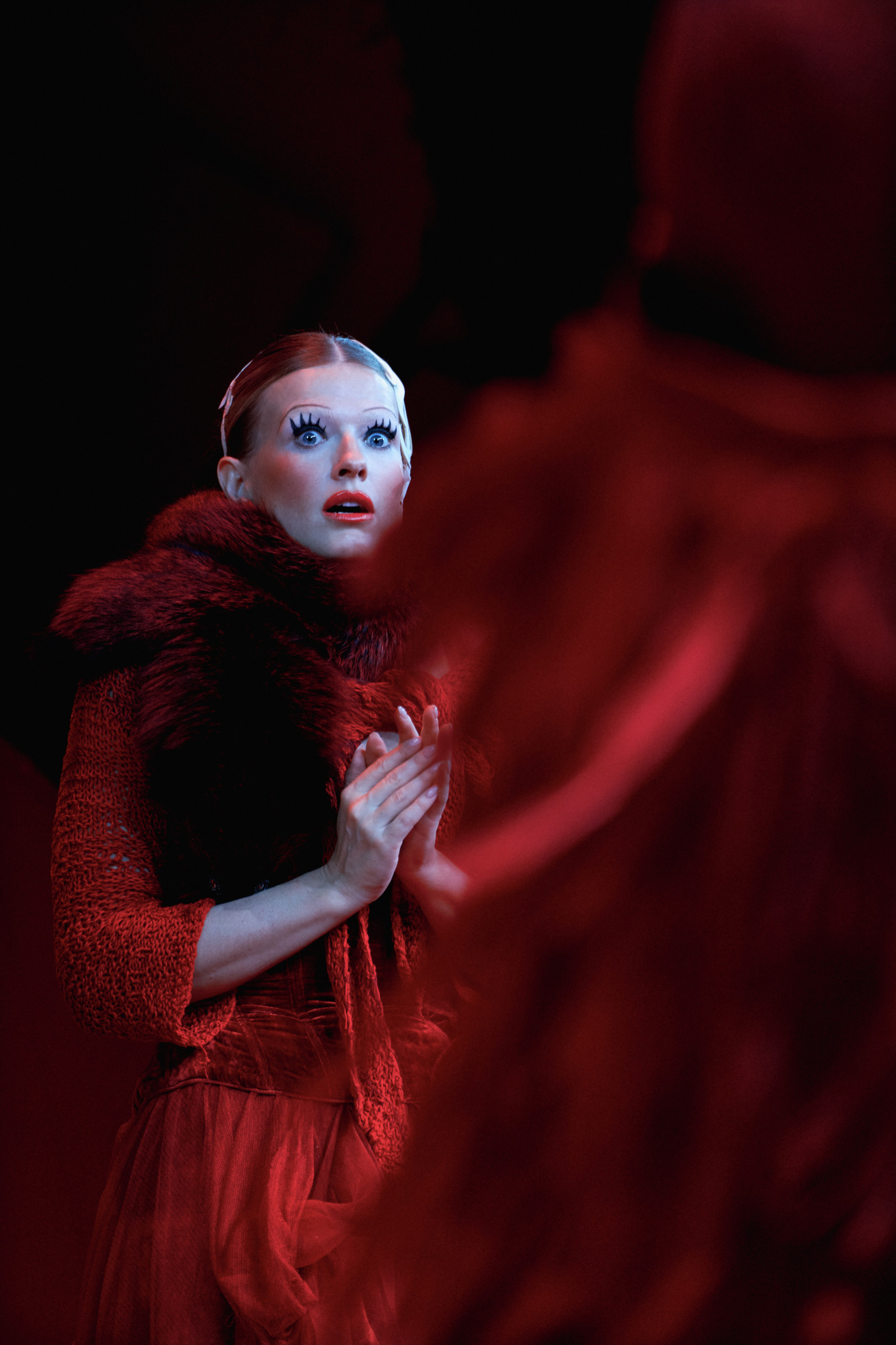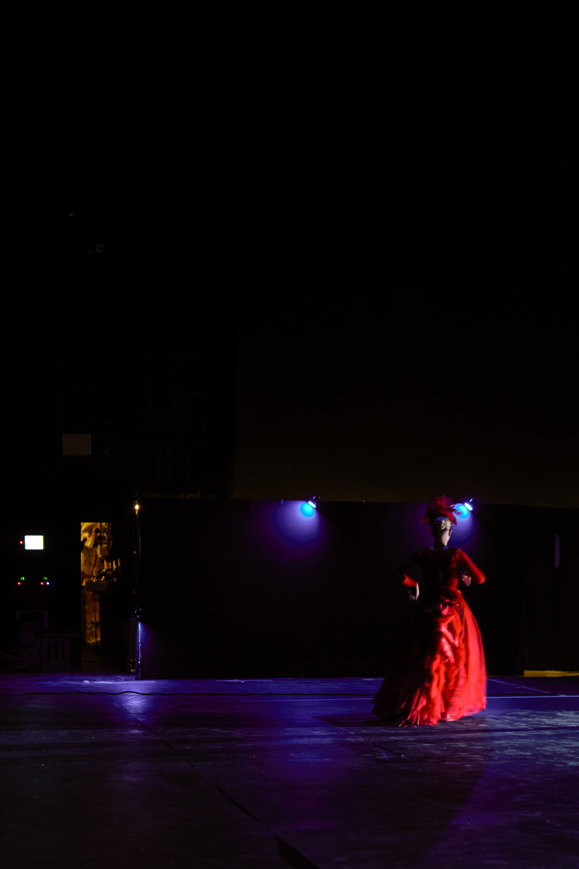 Фотоэссе Алисы Аслановой фиксирует спектакль как особое состояние: мгновения напряжения, застывшие позы, блеск украшений, острые линии тел в движении. Это не просто хроника, а визуальный комментарий к постановке, где театр продолжает жить за пределами сцены — в кадре, в деталях, в отражениях света.