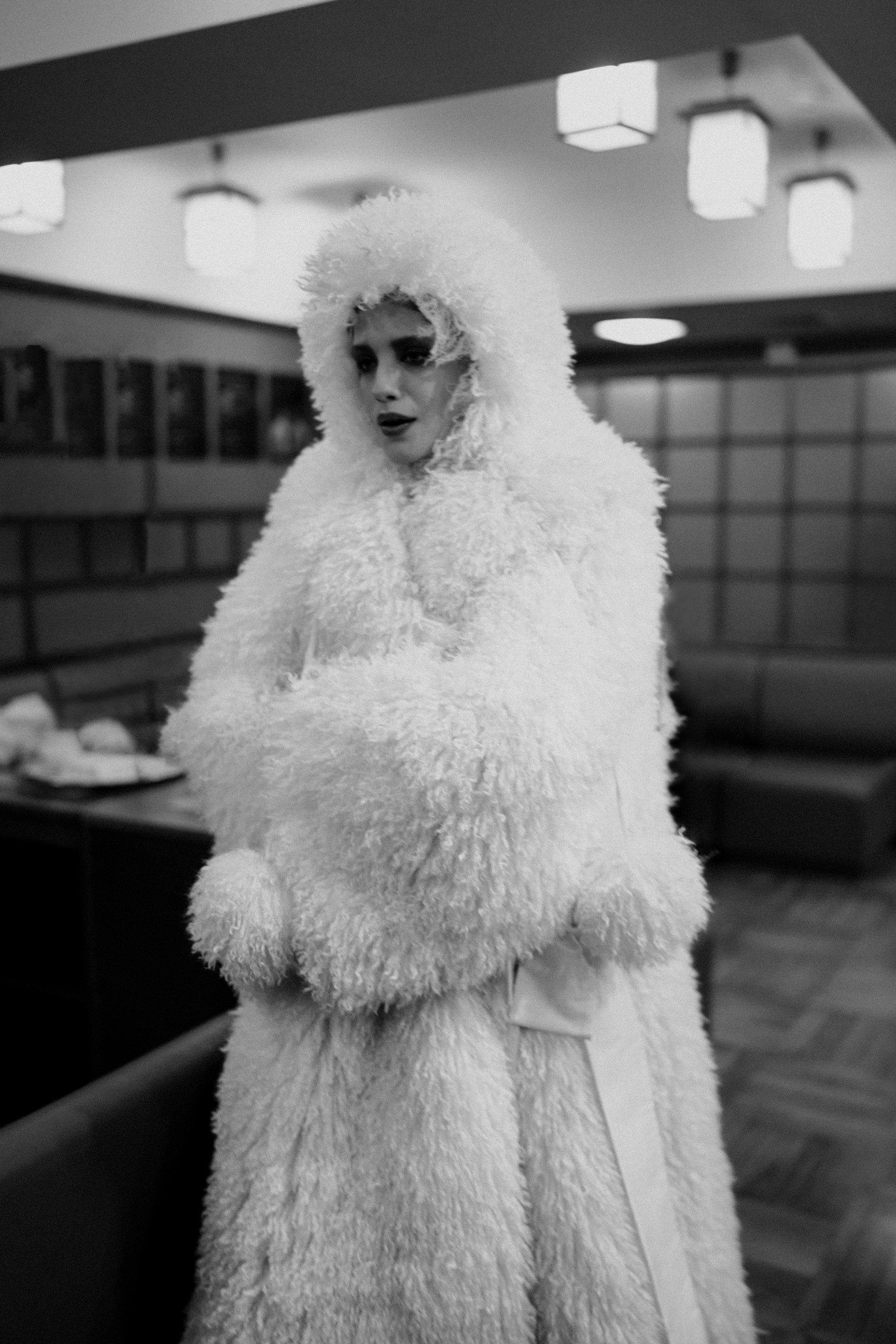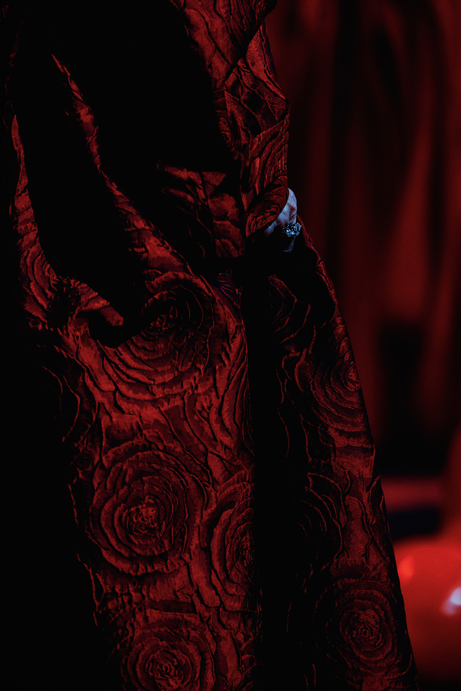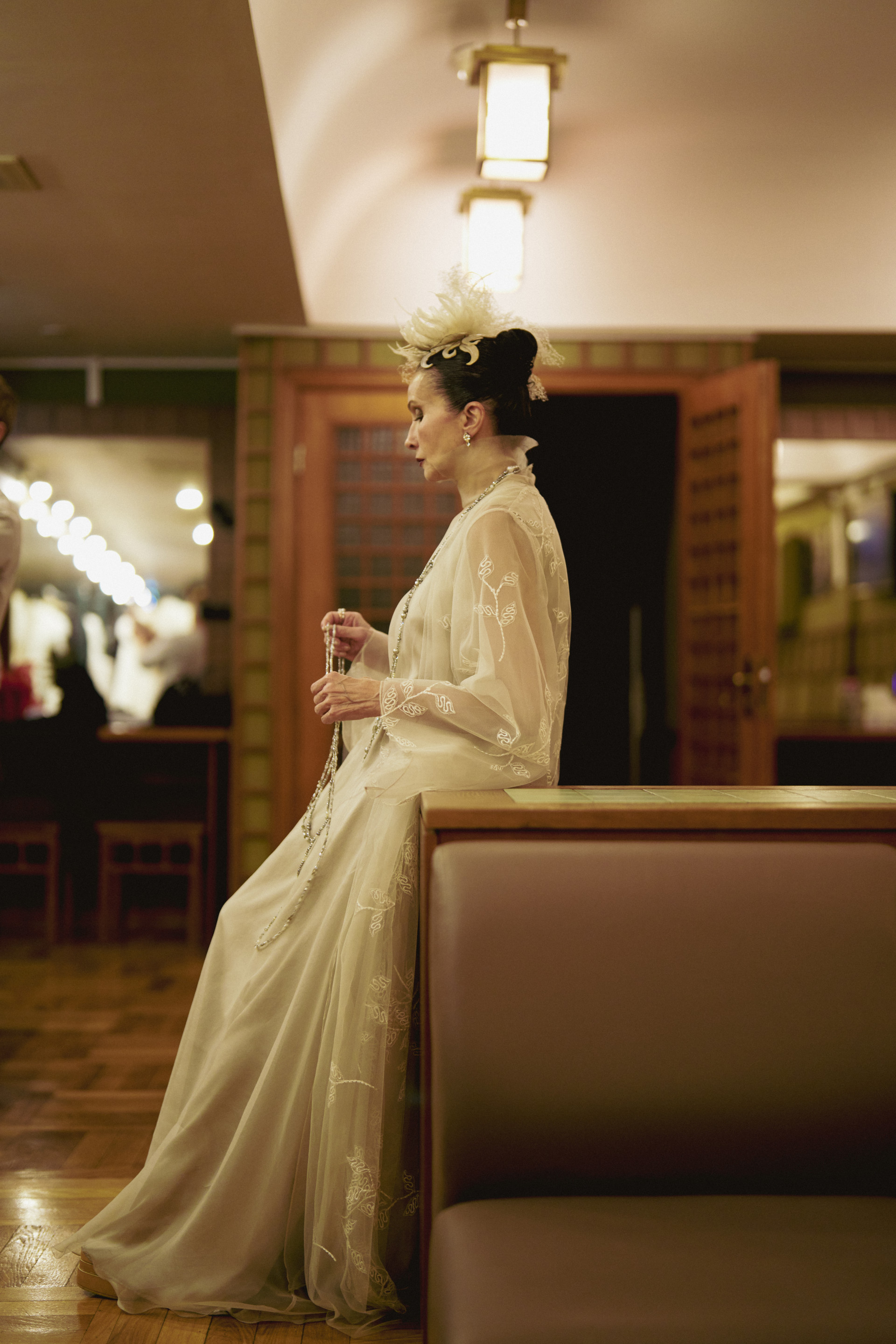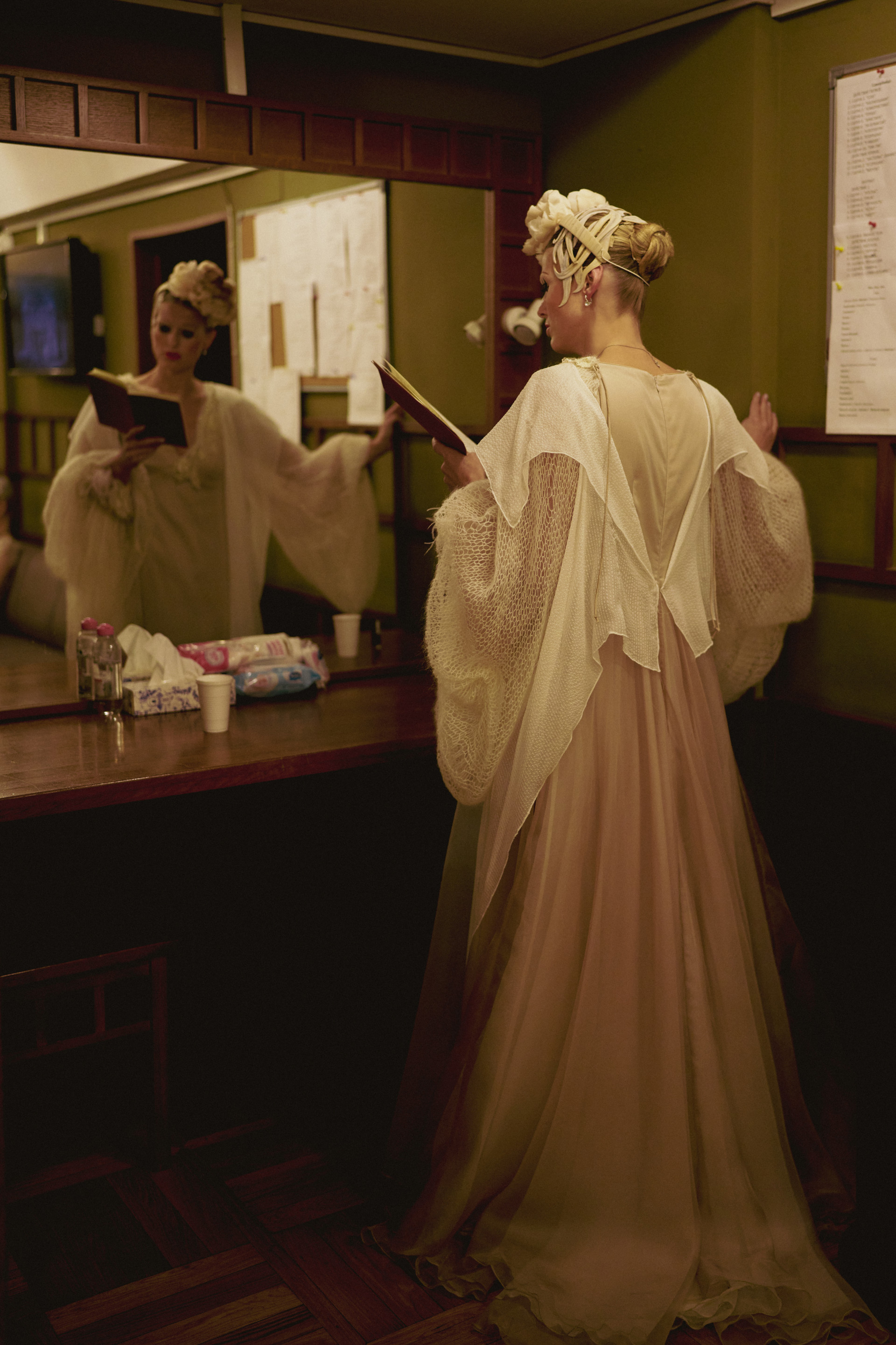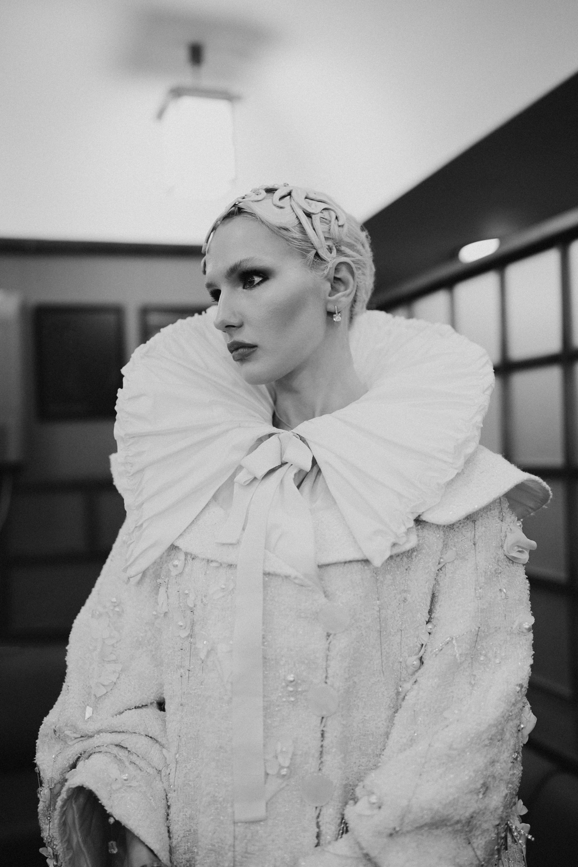 Фотоэссе Алисы Аслановой фиксирует спектакль как особое состояние: мгновения напряжения, застывшие позы, блеск украшений, острые линии тел в движении. Это не просто хроника, а визуальный комментарий к постановке, где театр продолжает жить за пределами сцены — в кадре, в деталях, в отражениях света.