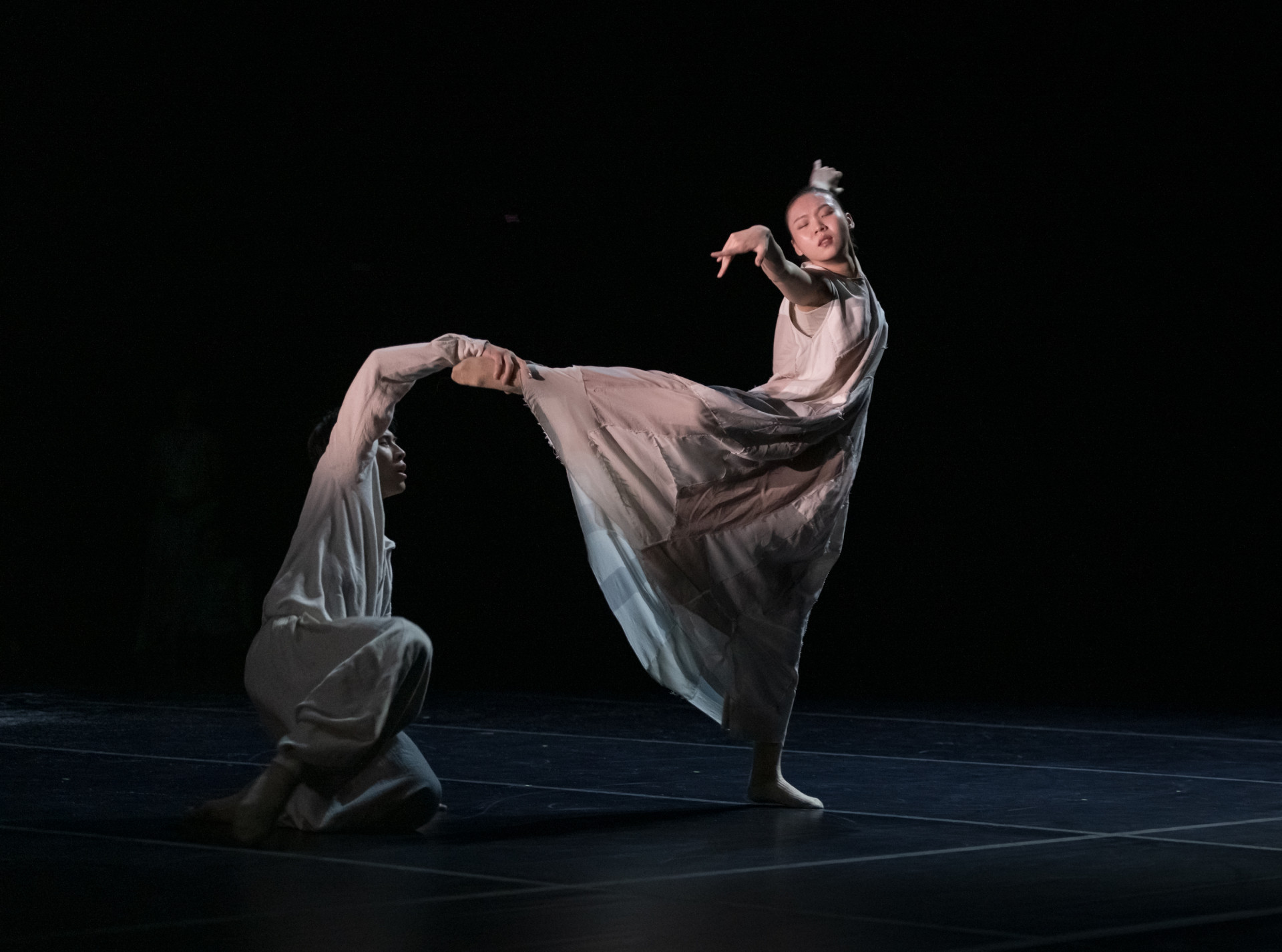 Первой части, условно названной «Сати», в этом смысле повезло больше. Безусловно, у «Гносиенн», которые Си Син выбрала для постановки вместе с «Гимнопедиями», есть каноническая танцевальная версия — Ханс ван Манен. Однако «Гносиенны» не заставлены, ван Манена помнят ценители. Да и балет с современным танцем давно так сепарированы, что наличие пуантового образца восприятию новых интерпретаций не мешает. Поэтому о «Сати» легче сказать как об удаче.