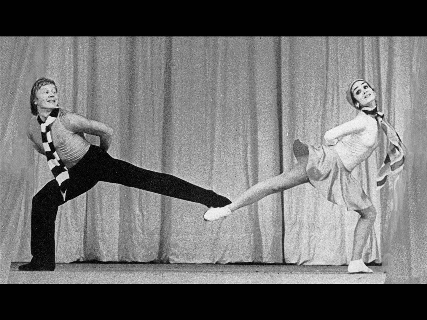 Да, я снова встала на пуанты. Но, честно говоря, не очень этому обрадовалась. Год протанцевав в Ансамбле народного танца, я, хотя и не сразу, почувствовала себя его частью, полюбила народный танец, у меня появился репертуар: «Класс-концерт», «Тарантелла», «Арагонская хота». И вдруг Моисеев переводит меня в свою новосозданную труппу, куда отбирал настоящие классические дарования. Там начинали Александр Годунов, Дмитрий Брянцев, Тийт Хярм, Элита Эркина, Вероника Гретер, Айгуль Гайсина. Думала, что не справлюсь, и в душе надеялась, что меня где-нибудь через месяц вернут. Но прошел месяц, два — меня все не возвращают! Мало того, Игорь Александрович поставил на меня с Александром Годуновым номер «Зарождение любви» в сюите «Поэзия чувств» на музыку Мендельсона. Это была красивейшая, я бы сказала, прозрачная и поэтичная классическая миниатюра. Игорь Александрович лелеял «Молодой балет» как любимое дитя. Пригласил прекрасных педагогов: Асафа Мессерера и Суламифь Мессерер, Ирину Тихомирнову. Моисеев хотел создать новый по сути концертный ансамбль, который бы гастролировал по стране и миру. Концепция была следующей: открытие новых имен артистов и хореографов. Для «Молодого балета» Касьян Голейзовский создал цикл «Мимолетности» на музыку Прокофьева, ставили новые номера маститый Асаф Мессерер и молодые балетмейстеры-новаторы Олег Виноградов, Игорь Чернышов, Генрих Майоров, Май Мурдмаа. Правда, когда начались зарубежные гастроли, в концертные программы по просьбе импрессарио вставили известные классические па-де-де. Для их исполнения пригласили великолепных танцовщиков: Юрия Соловьева и Калерию Федичеву из Ленинграда, Малику Сабирову, Вилена Галстяна.